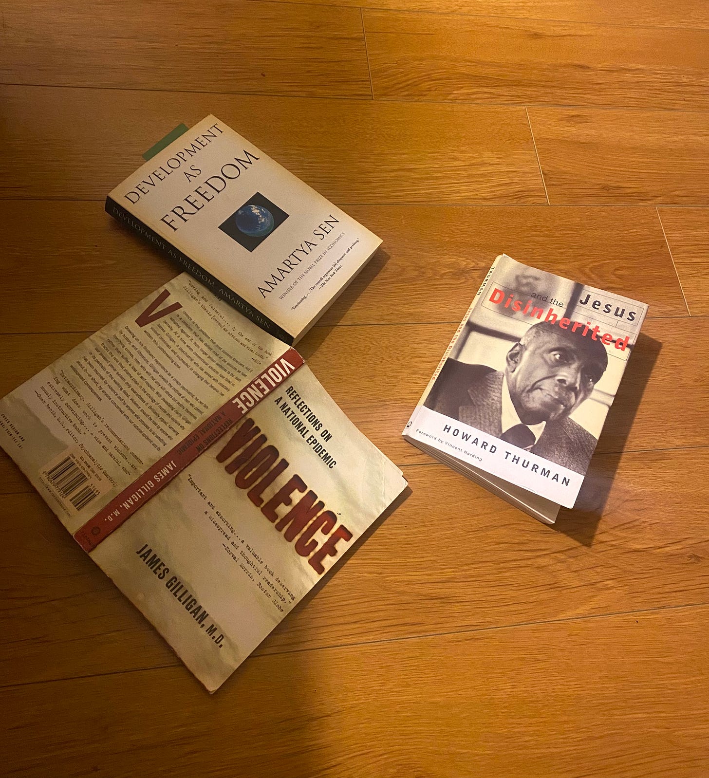 For this reason, and the current power dynamics at play in the larger system in America right now, I’ve been drawn to Thurman’s words. The systems that govern us are increasingly grouping more and more people, including my own peers, into the group of “the disinherited”, those who are the subject of Thurman’s inquiry. I’ve seen friends around me, the people I work with, and others slowly sapped of their inspiration. A million acute and invisible pressures and violences threaten and do put out the small embers of inner dreams. We are witnessing the growing effects of structural violences, killing people in mass through wars and genocide, and slower violent forces, like inaccess to proper medical treatment due to poverty. The other book I am reading pictured above is, “Violence: Reflections on a National Epidemic” by James Gilligan, M.D, which contains intertwining insights with Thurman’s message. He defines structural violence as follows: